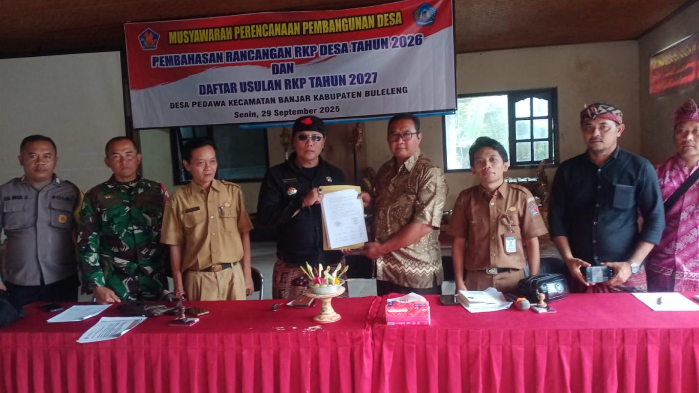 Dilaksanakan MUSYAWARAH PERENCANAAAN RKP DESA TAHUN 2026 DAN DAFTAR USULAN RKP TAHUN 2027 bertempat di Aula Kantor Perbekel Pedawa.