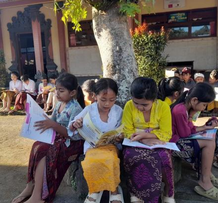 "Pukul 07.00 WITA, anak-anak kami sudah di sekolah menaruh tasnya, melakukan doa bersama dengan Tri Sandya, lalu berbondong-bondong mengambil sebuah buku bacaan dan dibacanya di luar kelas bersama siswa lainnya," tambah Wayan Sujana dengan semangat.